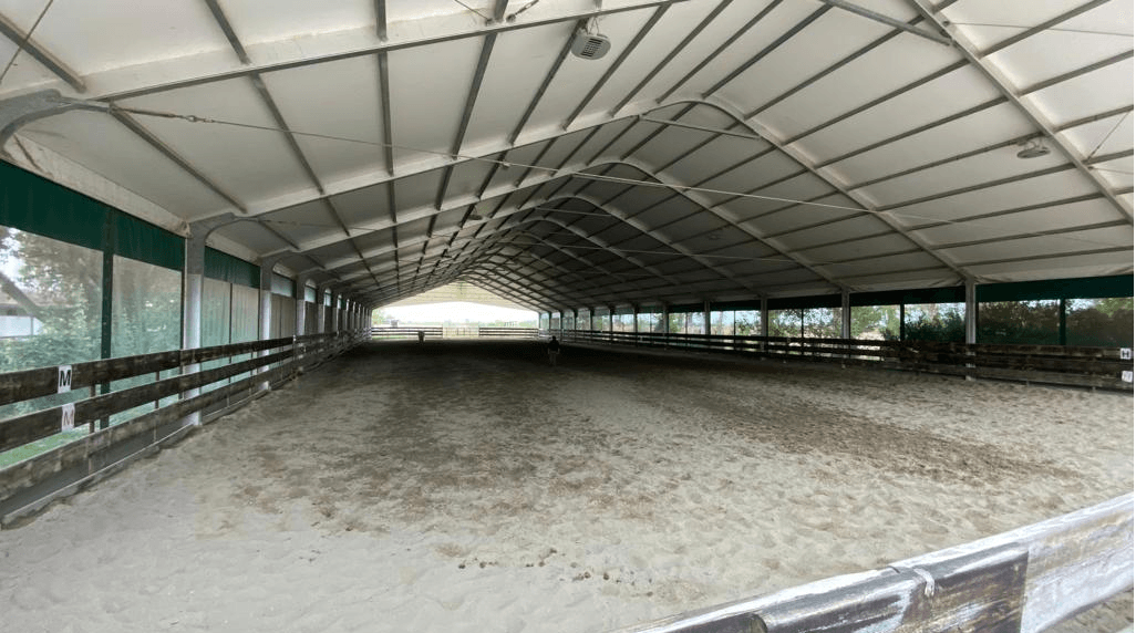 Per creare un centro altamente efficiente, abbiamo realizzato due spazi per la scuola di equitazione: uno all'aperto e uno al chiuso. In questo modo, anche durante i periodi meno soleggiati dell'anno, potrete allenarvi liberamente e senza limitazioni.